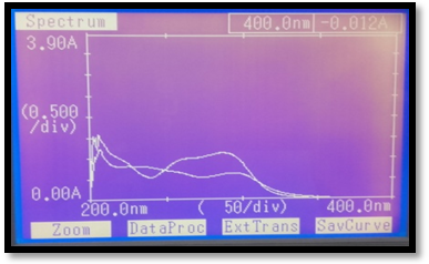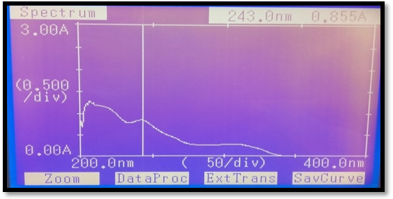 An aliquot portion of the stock solution of ROS and FEN was diluted to 10 ml of methanol in 10 ml of the volumetric flask to obtain a standard stock solution of 16µg/ml. These solutions were scanned over the range of 200–400 nm and the spectra were obtained. Rosuvastatin calcium showed considerable absorbance at 243 nm and fenofibrate showed considerable absorbance at 287 nm.