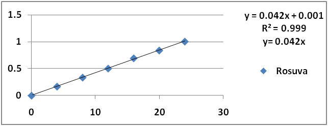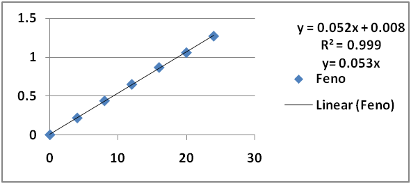 The linearity of the established method is achieved by running a series of a standard mixture of ROS and FEN. Standard calibration data was calculated.