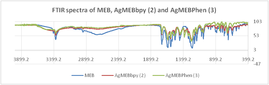 Fig. 1: FTIR spectra mebendazole and complexes 2 and 3