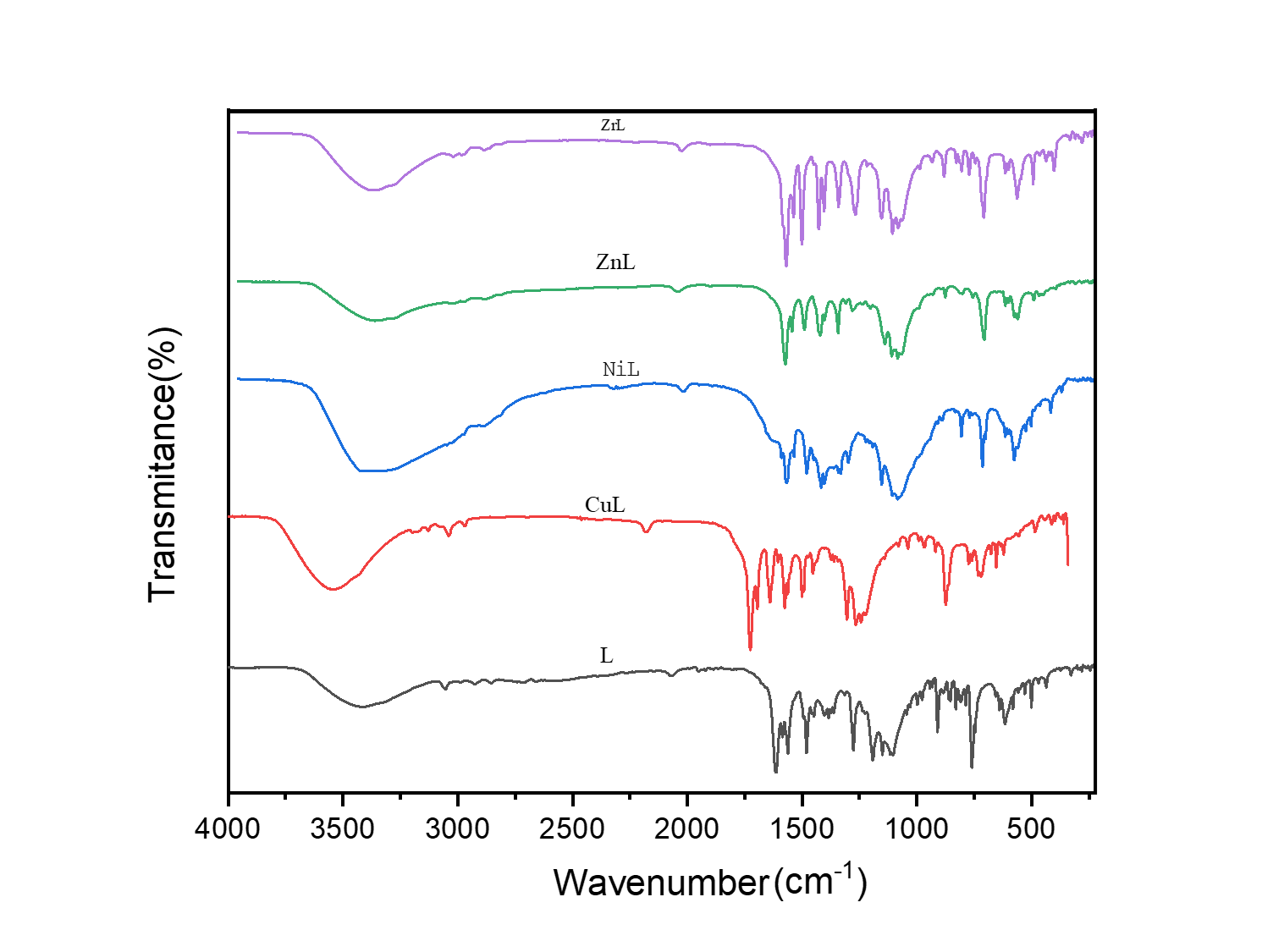 Fig. 3: FT-IR spectra of the ligand and its metal complexes