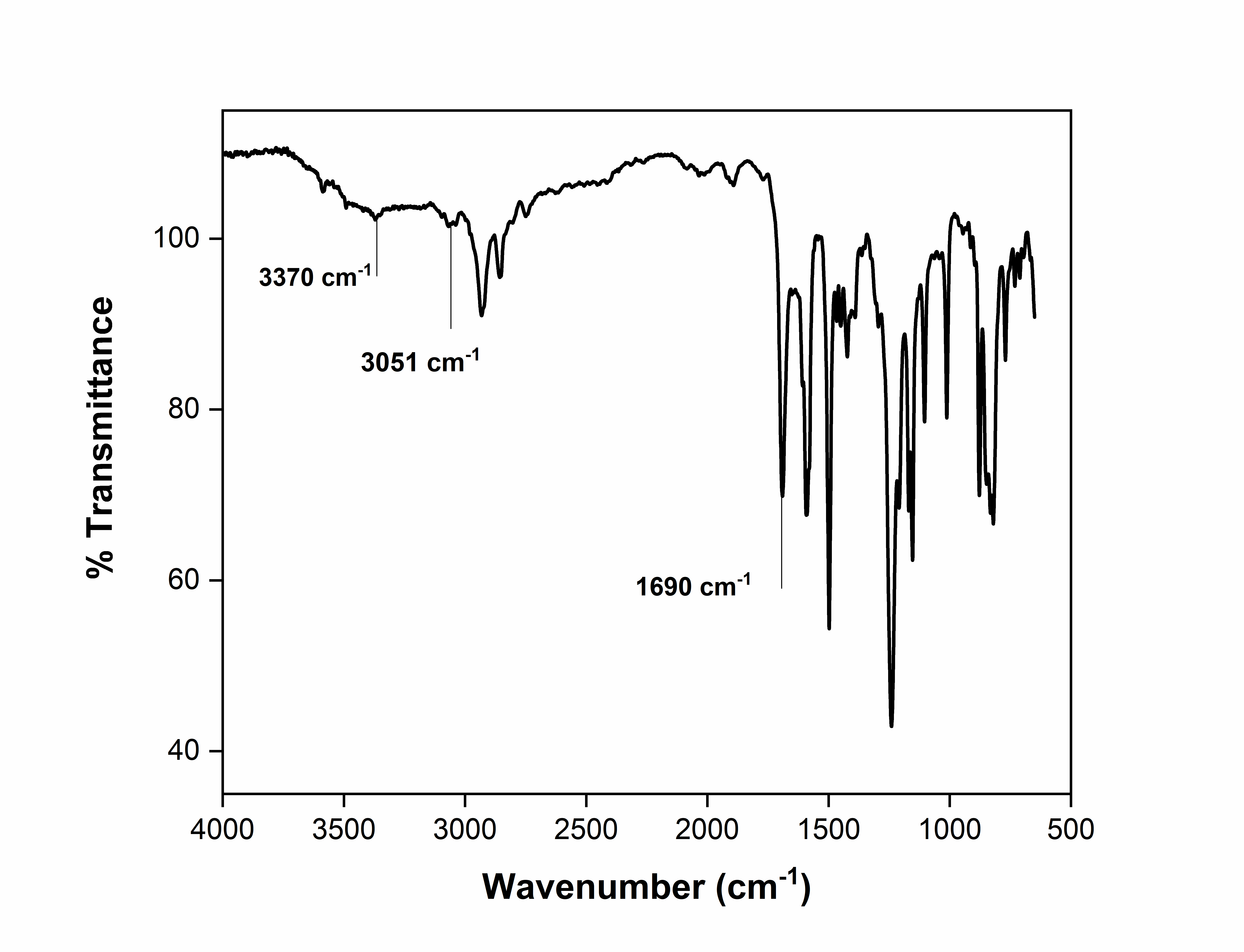 IR: 3370 cm-1 (-OH stretch), 3051 cm-1 (-NH stretch), 1690 (carbonyl stretch)