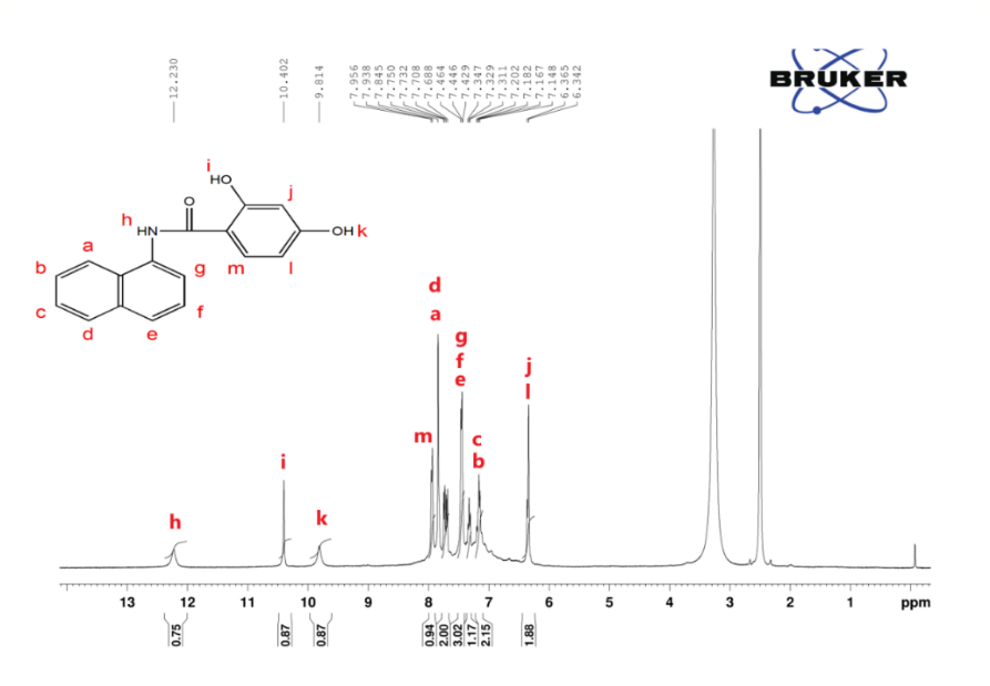 Fig. 2: 1H NMR spectrum of 2,4-dihydroxy-N-(naphthalen-8-yl)benzamide