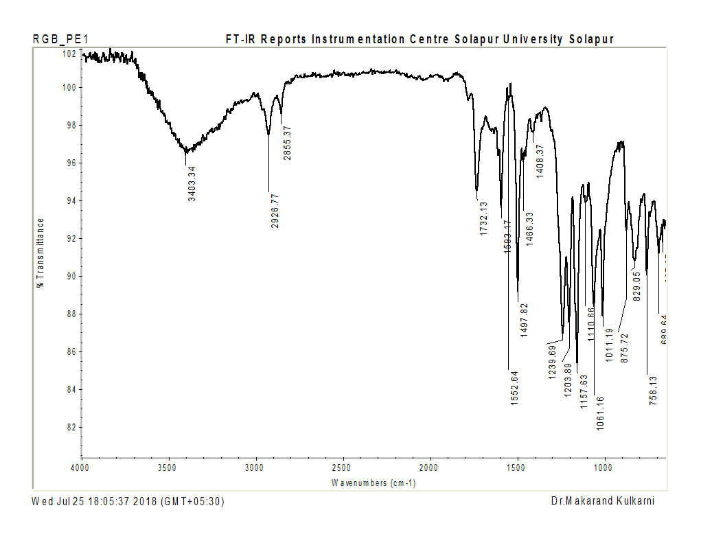 FT-IR spectra confirmed structural characteristics, showing ester carbonyl stretching at 1732 cm⁻¹ and amide group asymmetric stretching at 1699 cm⁻¹ (fig. 3).