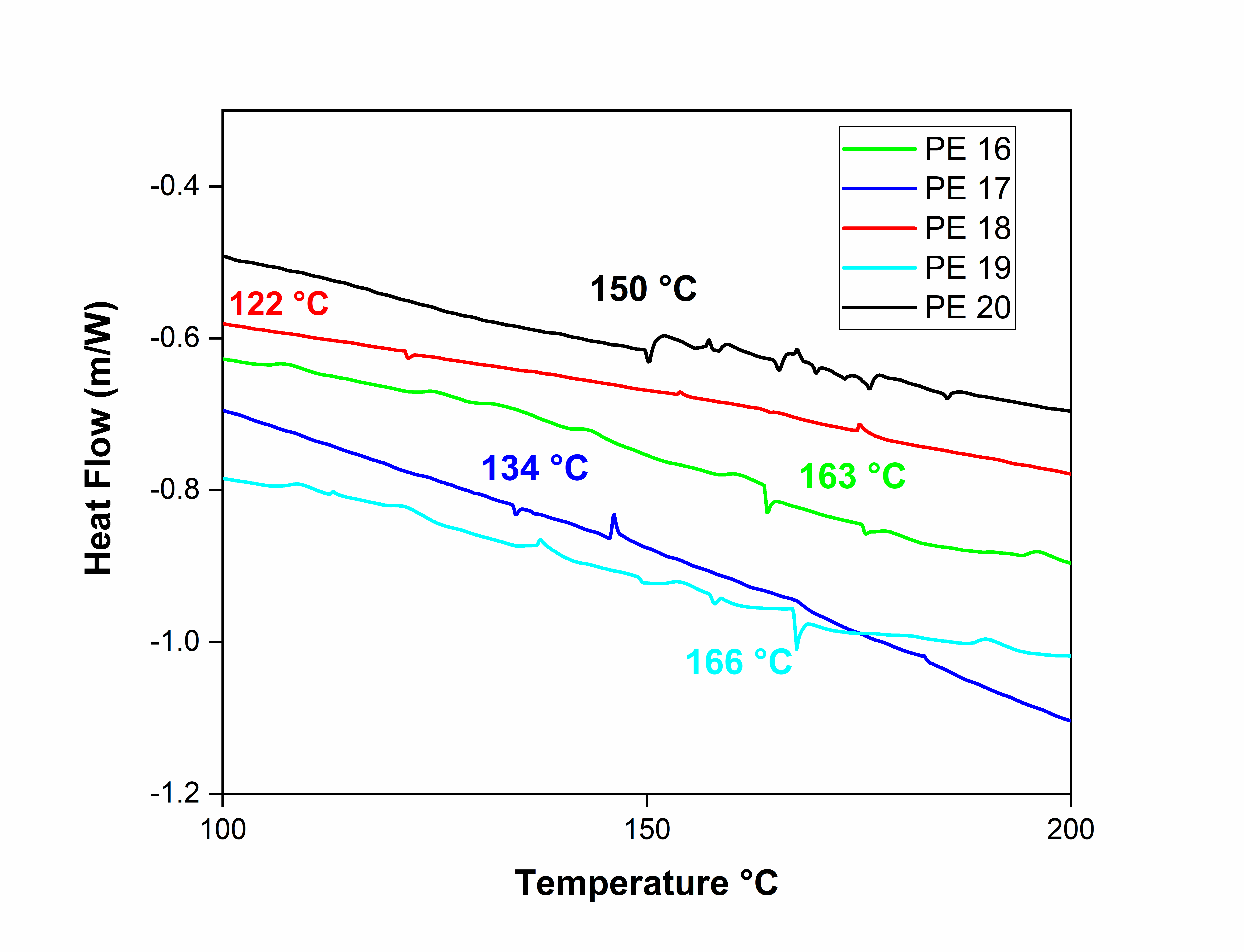 Fig. 4: DSC curves of polyesters, PE-16 to PE-20