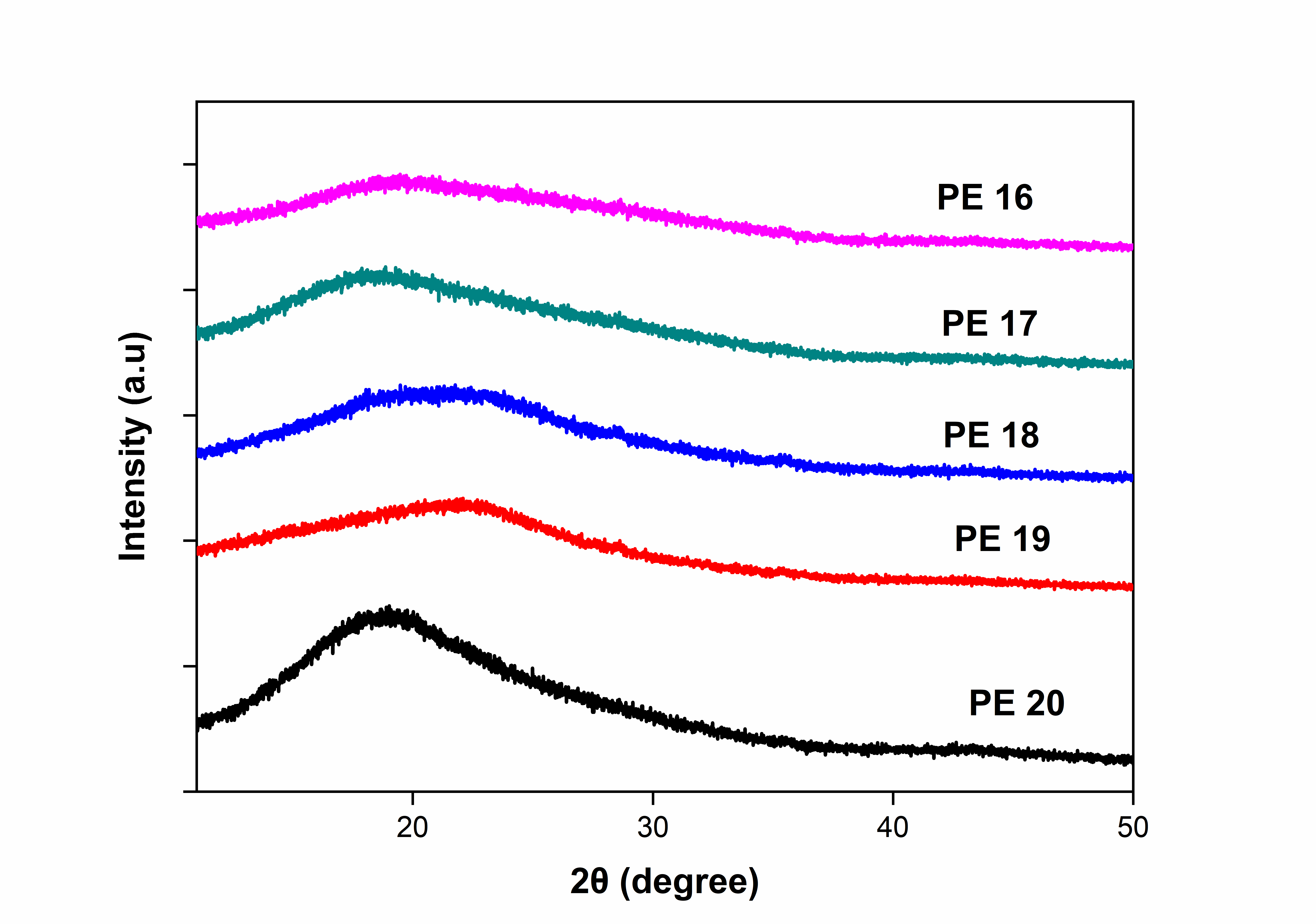 Fig. 6: XRD curves of polyesters, PE-16 to PE-20