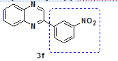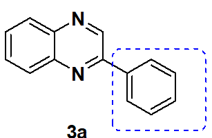 In a round-bottom flask, a mixture of phenacyl bromide (2a–2m, 0.001 mol) and Fe(acac)₃ catalyst (40 mg) was dissolved in ethanol (5 ml) and stirred at room temperature for 10 min. Subsequently, o-pheneylenediamine (1a–1b), 0.001 mol) was added slowly to the reaction mixture, and the resulting homogeneous mixture was stirred at 60 °C for the stipulated time. The progress of the reaction was monitored by thin-layer chromatography (TLC). The reaction mixture was diluted with ethyl acetate (20 ml) anddiluted HCl (5 ml, 0.1 N). The combined organic layers were dried using anhydrous MgSO4, filtered, and the solvent was removed by evaporation. The crude product was purified by crystallization using ethanol to afford the pure 2-pheny quinoxalines (3a–3k). All desired product characterised by IR, H1-NMR, C13NMR and melting points of the desired products were found to be in good agreement with those reported in the literature.