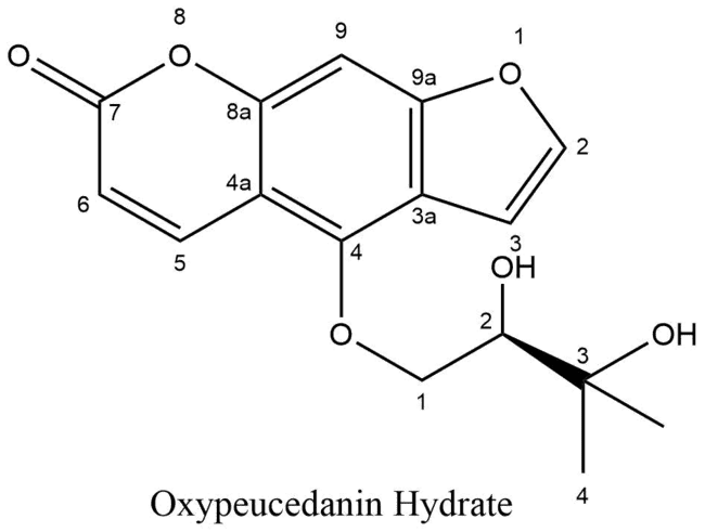 | Ficus exasperate | Leaves | α-Pinene (43), p-Cymene (44), β-Caryophyllene (45), 6,10,14-Trimethyl-2-pentadecanone (46), 9-Octadecenoic acid (47), 3-O-glycerolacetate (48), Methyl-2,3-dihydroxyhexacosanoate (49), Oxypeucedanin Hydrate (50) [46-48]. |