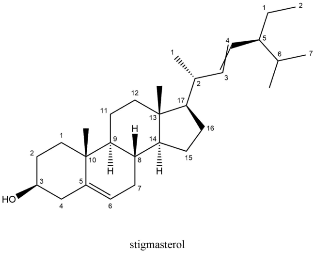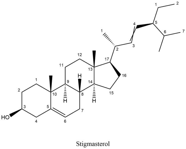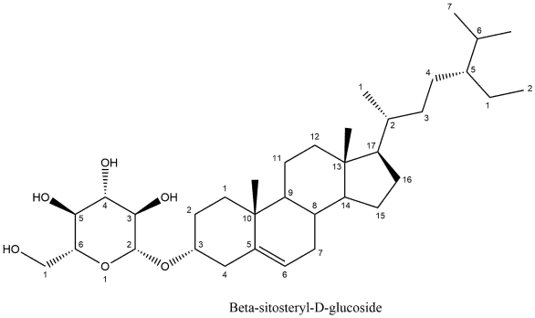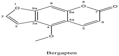 Germanicol acetate (56), Psoralene (57), Bergapten (58), Vanillic acid (59), Catechin(60), Genistein (61), β-Sitosterol (62), Stigmasterol(63) [51, 52]. |