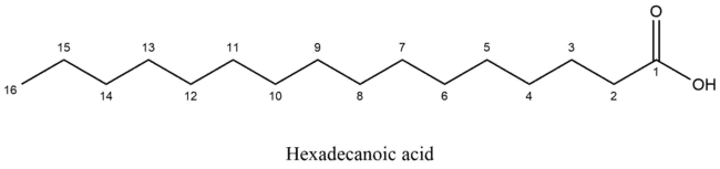 | 14 | Chemical Formula: C16H32O2 Exact Mass: 256.24 Molecular Weight: 256.43 m/z: 256.24 (100.0%), 257.24 (17.3%), 258.25 (1.4%) Elemental Analysis: C, 74.94; H, 12.58; O, 12.48 |
