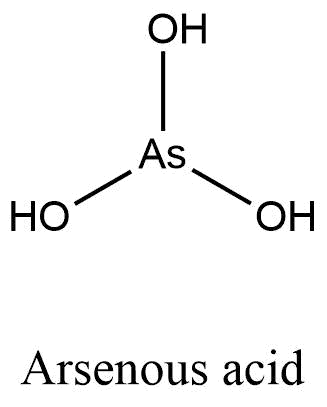 | 21 | Chemical Formula: AsH3O3 Exact Mass: 125.93 Molecular Weight: 125.94 m/z: 125.93 (100.0%) Elemental Analysis: As, 59.49; H, 2.40; O, 38.11 |