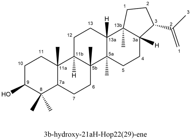 | 36 | Chemical Formula: C30H50O Exact Mass: 426.39 Molecular Weight: 426.73 m/z: 426.39 (100.0%), 427.39 (32.4%), 428.39 (2.7%), 428.39 (2.4%) Elemental Analysis: C, 84.44; H, 11.81; O, 3.75 |