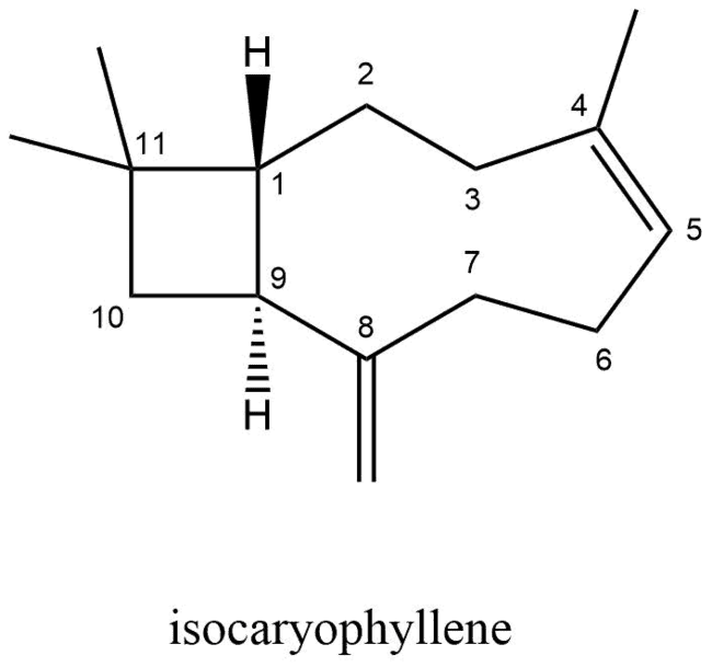 | 45 | Chemical Formula: C15H24 Exact Mass: 204.19 Molecular Weight: 204.36 m/z: 204.19 (100.0%), 205.19 (16.2%), 206.19 (1.2%) Elemental Analysis: C, 88.16; H, 11.84 |