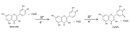 Green synthesis of copper nanoparticles by using flavonoid quercetin as a stabilizing agent