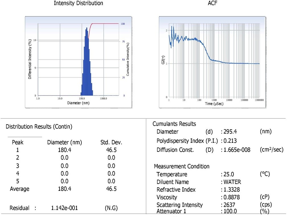 Average particle size, particle size distribution and Polydispersity index were measured by MALVERN ZETASIZER instrument. Stability and particle size distribution were measured by standard values such as,