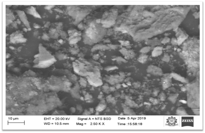 Scanning Electron Microscope using a focused beam of electrons, it generates various signals at the surface of a solid sample which reveals the details of surface morphology, chemical composition, crystalline structure and therefore, the orientation of materials constituting the sample. For visualizing FMCuNPs under SEM 10 μl was uniformly spread on a glass slide and allowed to dry at room temperature. After gold coating the sample with a Polaron E5100 gold sputter coater, the morphology was observed under a Philips 505 electron microscope at an accelerating voltage of 20 kV. SEM image of flavonoid (Quercetin) mediated biosynthesized copper nanoparticles indicated the formation of homogeneous and relative capping of spherical CuNPs [27-31].