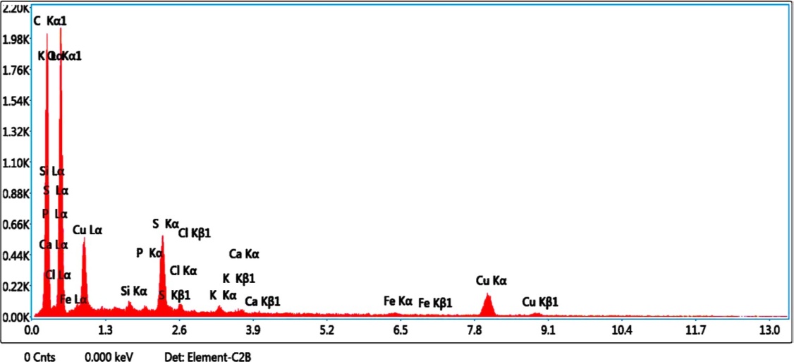 Energy Dispersive X-ray Spectroscopy (EDXS) is a semi-quantitative X-ray micro-analytical technique that can come up with information about the elemental composition of a sample. It is useful in identifying metals and certain kinds of polymeric materials with distinctive elemental signatures. During EDXS Analysis, an electron beam is scanned over the surface of the sample and therefore the electrons strike and stimulates the sample. Almost instantaneously, as each element returns to its original energy level, it emits X-rays of specific energies and at different wavelengths characteristic of the element [27-31].