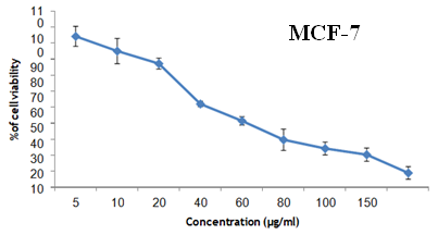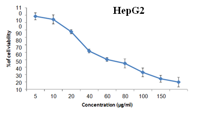 MTT assay by using liver cancer cell line (HepG5) and breast cancer cell line (MCF-7)