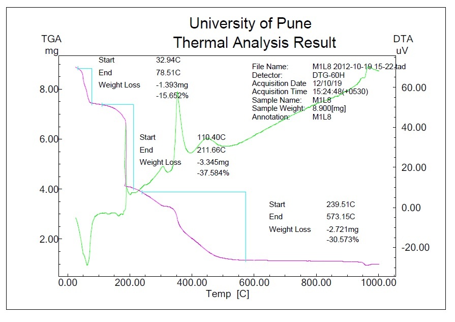 Fig. 1: TGA-DTA curve of Mn(II) complex of ligand L8