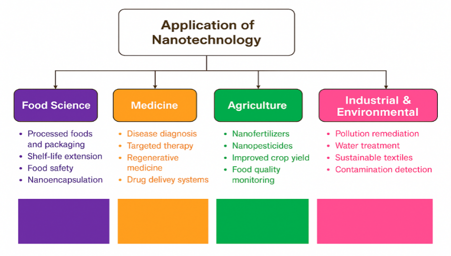 Nanotechnology is an innovative and promising field that has found applications across various sectors, including medicine, agriculture, and the food industry [44]. Fig. 9. Indicates application of nanotechnology in various field.